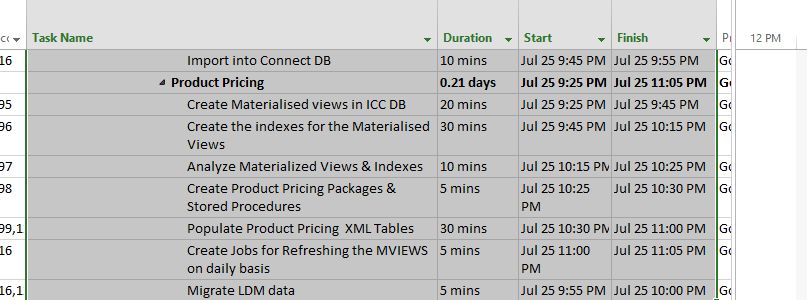 We needed to appropriately model the data migration and solution deployment sequence with full transparency of  all dependencies. In order to optimize the execution time, we also needed transparency of the critical path (spending time tuning anything other than the critical path would be a waste!).